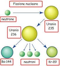 La fissione nucleare è la reazione chimica dove l’Uranio 235 (ossia l’isotopo dell’uranio il cui nucleo ha 235 neutroni) od altri atomi pesanti es. il Plutonio 239, per effetto del bombardamento di neutroni si dividono in atomi più leggeri liberando ancora neutroni ed una gran quantità di energia. L’energia si libera perchè la massa delle sostanze reagenti è più elevata di quella dei prodotti. Il deficit di massa si traduce pertanto in energia. Si innesca poi quella che comunemente viene detta reazione a catena ed è su tale principio che è basato il funzionamento e l'esplosione nucleare di una bomba atomica. Se in qualche maniera si riesce a controllare il numero dei neutroni prodotti dalla reazione la reazione continua in maniera controllata e si parla di fissione controllata. Su tale principio funzionano i reattori nucleari.