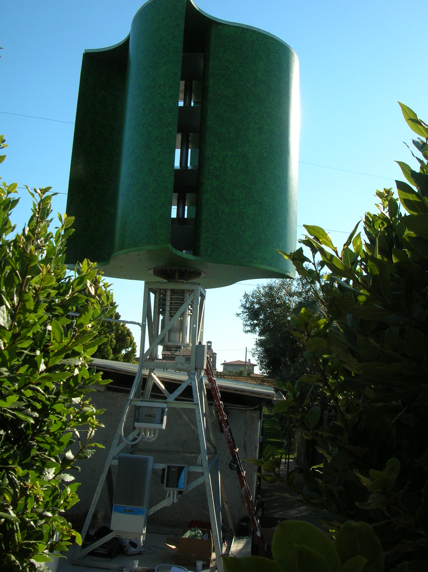 Macchine eoliche ad asse verticale sono state concepite e realizzate fin dal 1920. La sostanziale minore efficienza rispetto a quelle con asse orizzontale (30%) ne ha di fatto confinato l'impiego nei laboratori. L'unica installazione industriale oggi esistente è quella di Altamont Pass in California, realizzata dalla FloWind nel 1997. L'installazione è in fase di smantellamento, a causa delle difficoltà economiche del costruttore, che è in bancarotta.