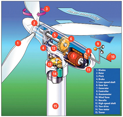 I giri al minuto dell'aerogeneratore sono molto variabili, come lo è la velocità del vento; ma la frequenza di rete deve essere costante a 50 hertz, perciò i rotori vengono collegati a una serie di inverter prima di immettere l'energia in rete.