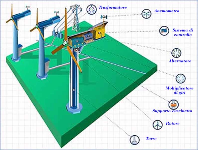 Il suo sfruttamento, relativamente semplice e poco costoso, è attuato tramite macchine eoliche divisibili in due gruppi distinti in funzione del tipo di modulo base adoperato definito generatore eolico: